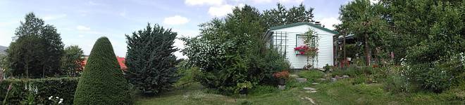 Unser Garten liegt im Mittelgebirge in einer Südlage in ca. 550 m Höhe und hat eine Größe von ca. 1300 m². Bedingt durch die Höhenlage und den sandigen und trockenen Boden sind keine hohen Erträge zu erwarten. Für den Anbau empfindlicher Kulturen haben wir uns ein kleines Gewächshaus zugelegt, ein kleiner Gartenteich, eine Gartenlaube und einige Obstbäume sind ebenfalls vorhanden. In den Sommermonaten dient uns der Garten vorrangig zur Erholung - soweit die Witterung dieses zuläßt.